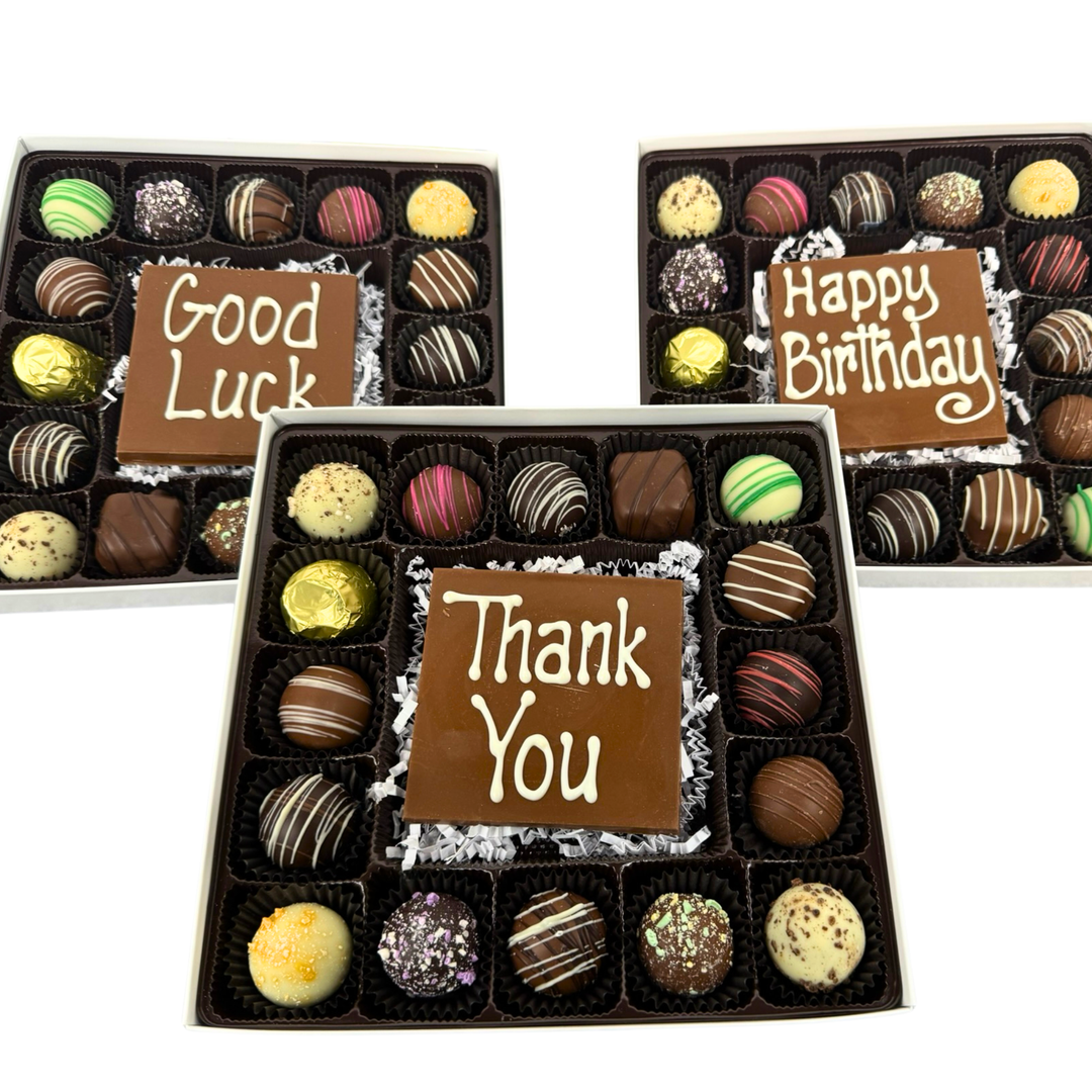 Our chocolate boxes are a timeless gift for any occasion—whether you're marking a milestone, saying thank you, celebrating a holiday, or sending love "just because." Each box is filled with an assortment of handcrafted chocolates made from the finest ingredients, carefully curated to offer a rich and satisfying experience. Elegant, customizable, and always appreciated, our chocolate boxes make the perfect gift for friends, family, colleagues, or clients.