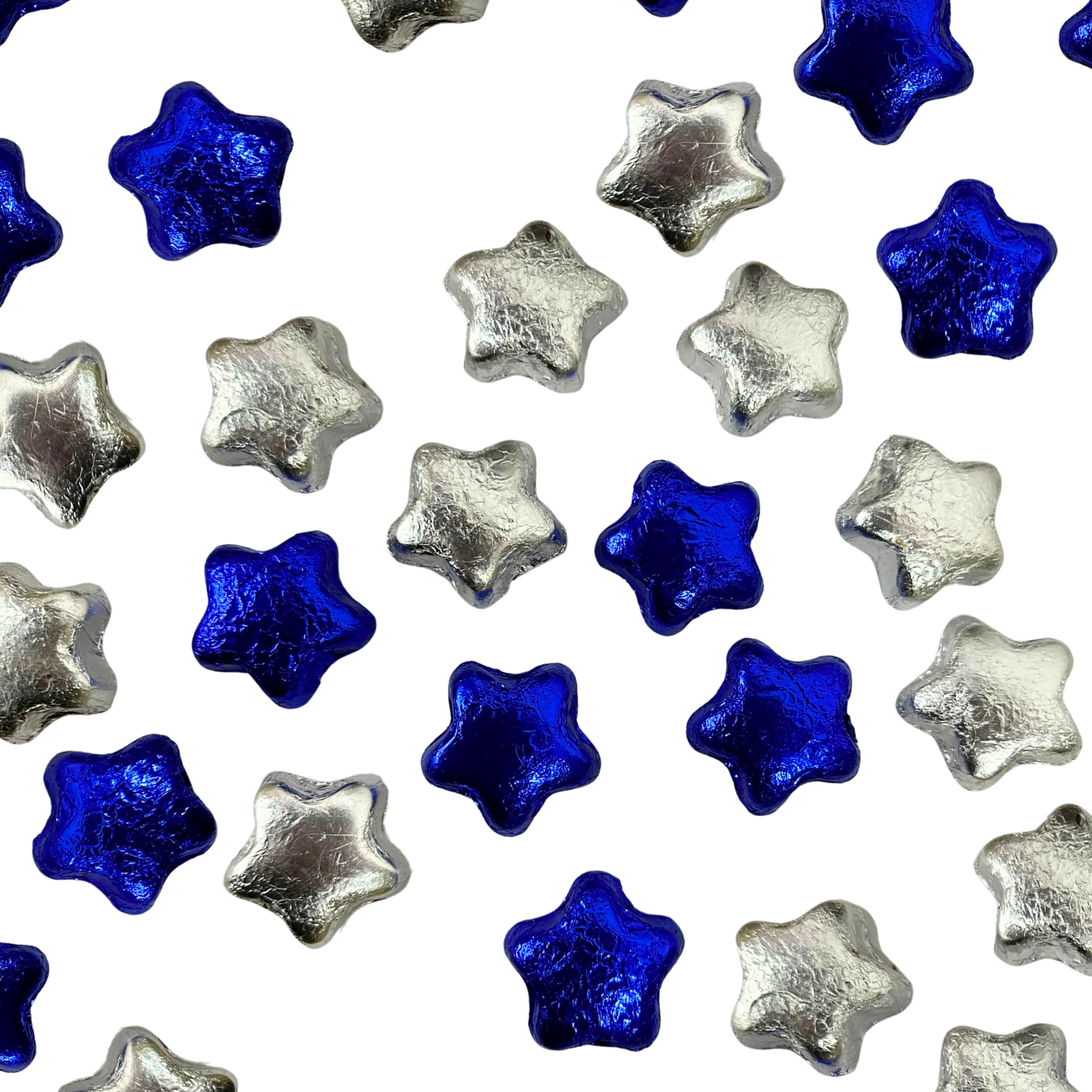Bright, festive, and deliciously rich Foiled Stars collection celebrates the season in classic style. Each piece is crafted from smooth, premium chocolate and wrapped in elegant silver, gold, and blue foils that shimmer like the Festival of Lights itself.