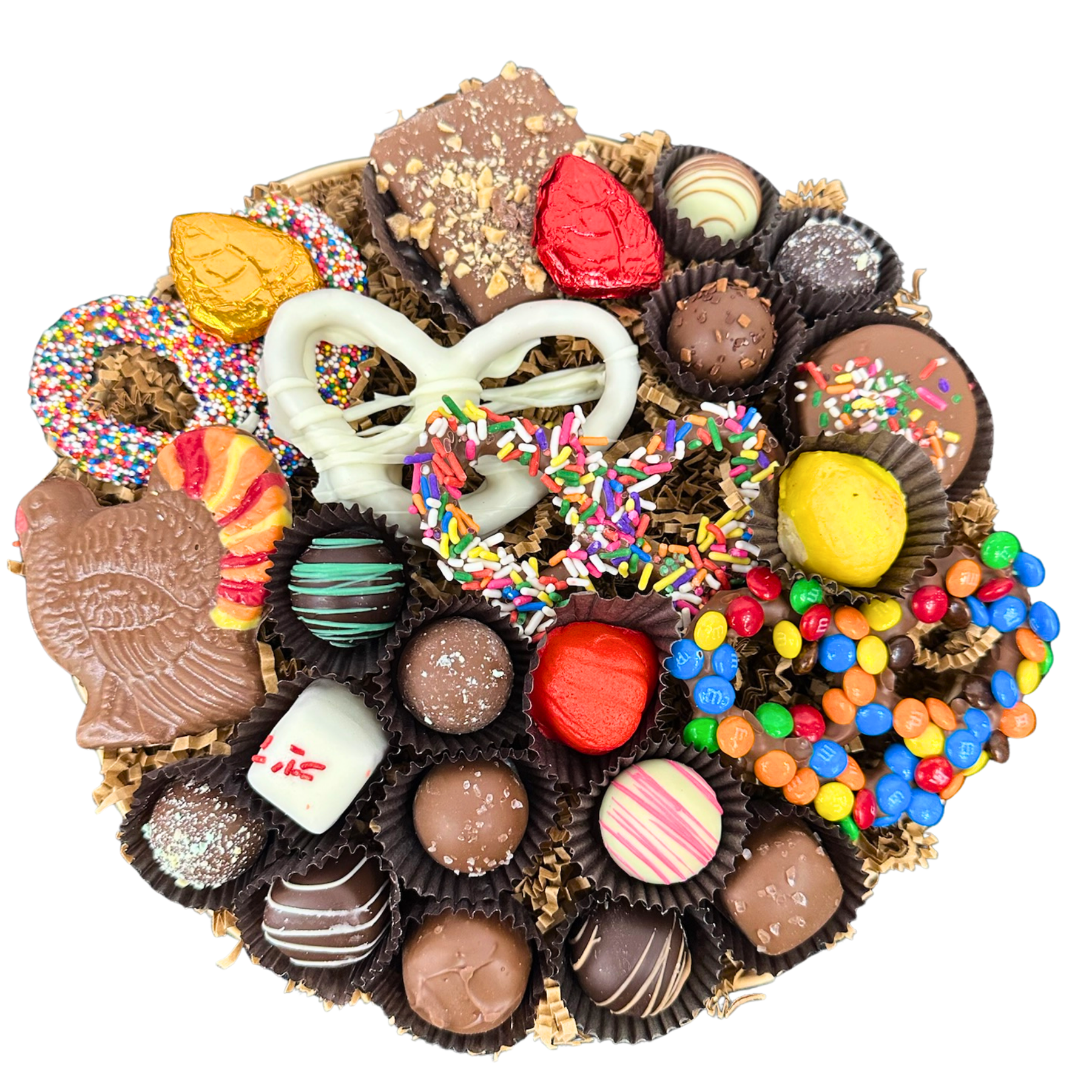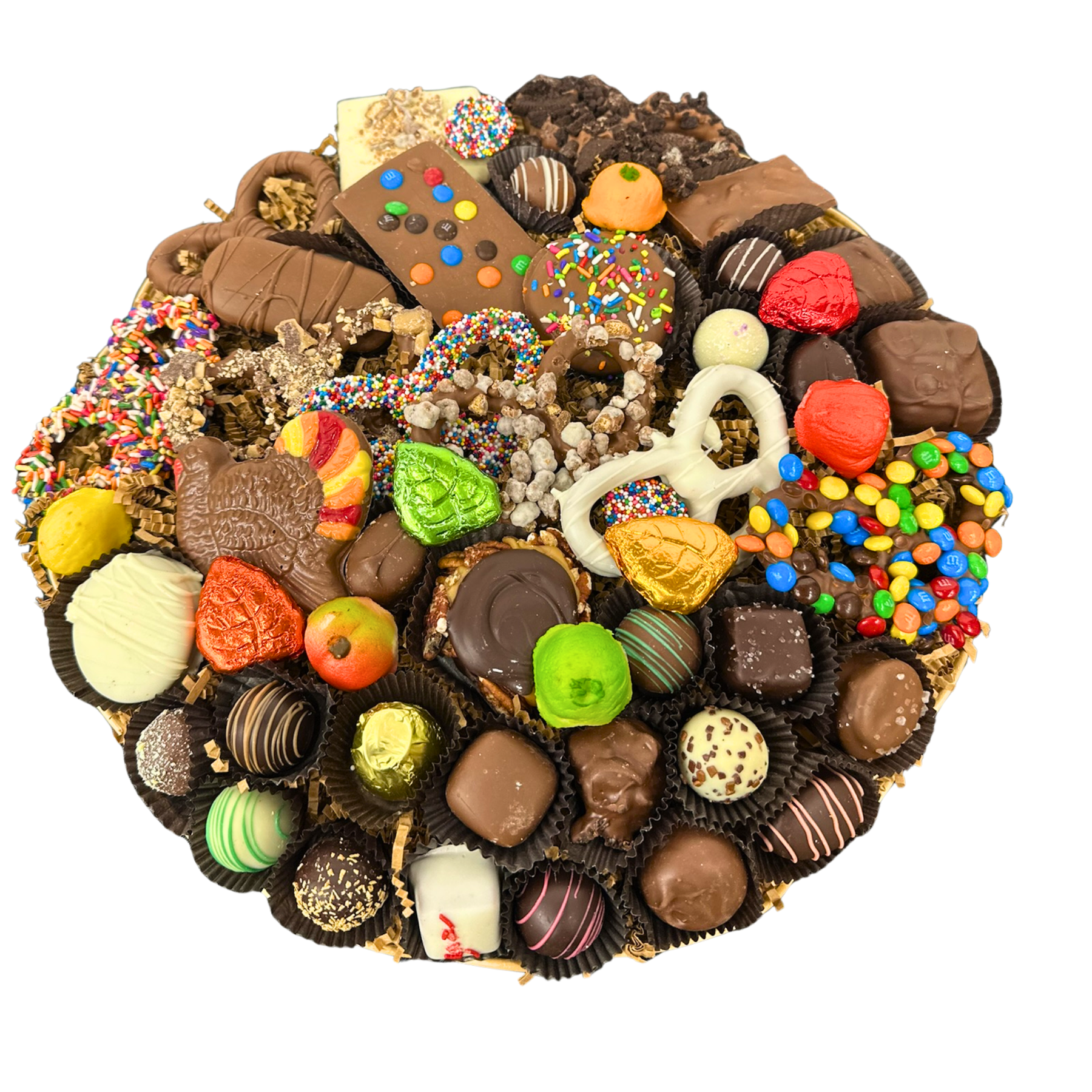 Celebrate the season of giving and indulgence with our curated Thanksgiving Chocolate Baskets — a delicious way to bring joy to loved ones, clients, or yourself. Crafted with premium ingredients and kosher certified at our Hewlett, NY location, each basket is artfully assembled with an irresistible mix of chocolates, hand-dipped pretzels and festive cookies.